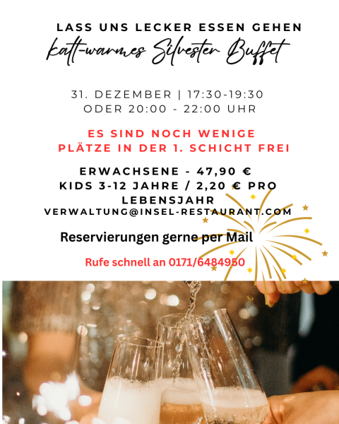in dieses Jahr verwöhnen wir Sie zu Silvester mit einem leckeren kalt-warmen Buffet.